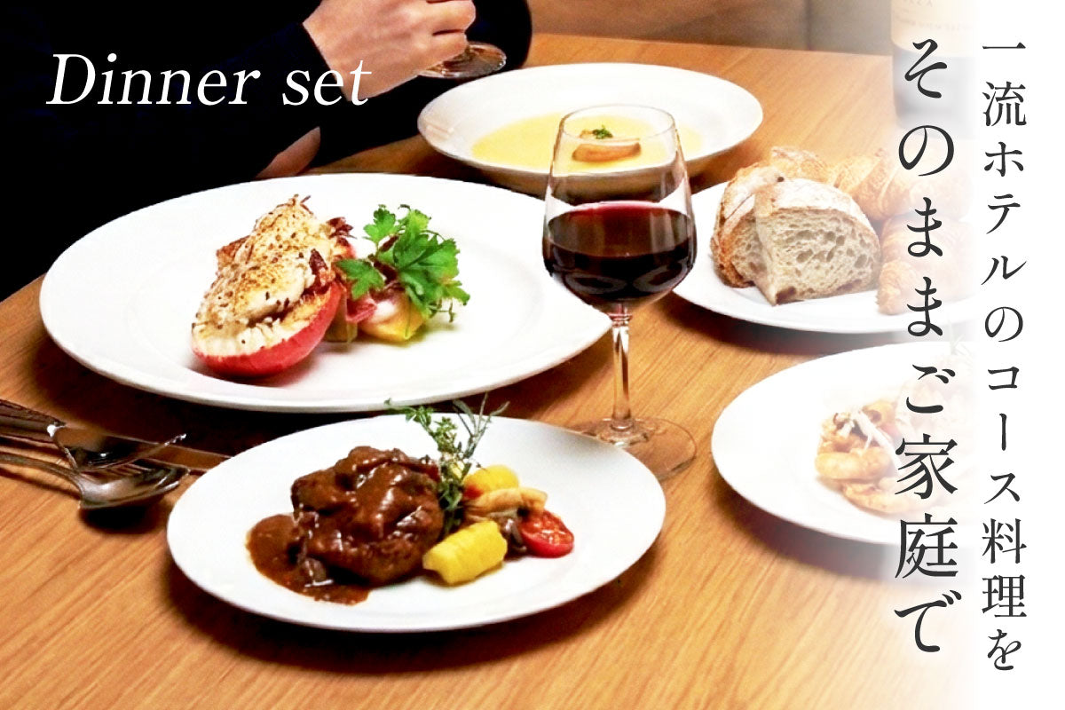 「2人のディナーセット」など、大切な方と過ごすプレミアムなひとときのために 。一流ホテルのコース料理をそのままご家庭で再現できる、贅沢な組み合わせをご提案します 。
